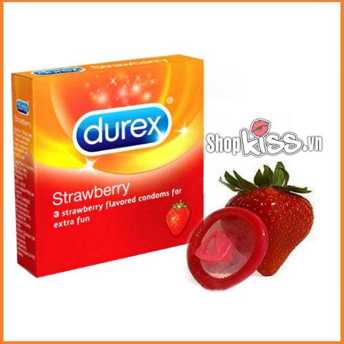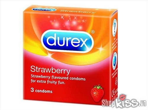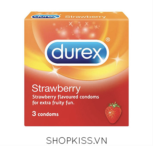 Bao cao su hương dâu Durex Strawberry hộp 3 cái có hương thơm dâu tây lừa đảo rất đẹp được chị em phụ nữ ưa thích.