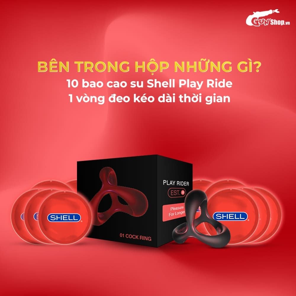 Bao cao su Shell Play Rider bảng giá với 10 chiếc bao cao su cộng kèm 1 vòng đeo kéo dài thời gian quan hệ