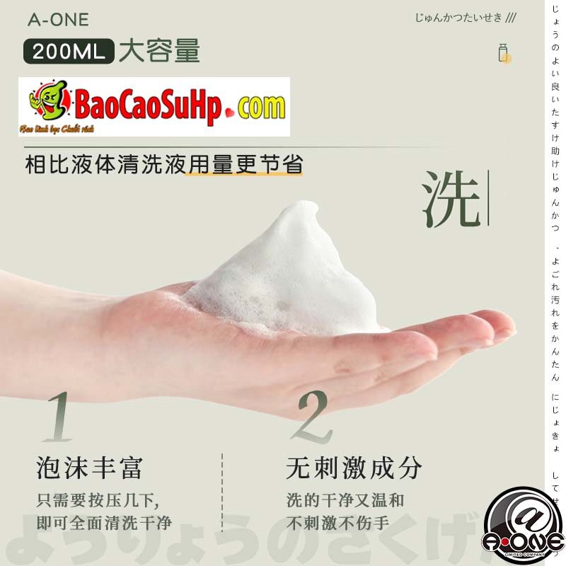 1.Thông số bọt vệ sinh khử khuẩn làm sạch sextoy A-ONE Clean 200ml